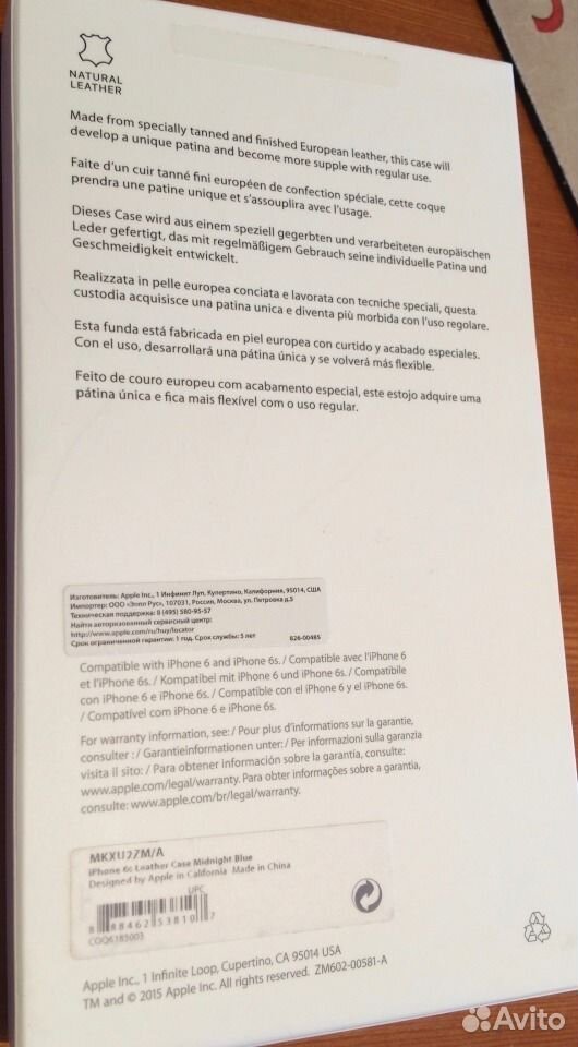 Продается новый оригинальный кожаный чехол для iPhone 6/6s тёмно-синий MKXU2ZM/A, не использовался - т.е. состояние нового, официальная гарантия Apple. Куплен у официального ресселера, чек в наличии